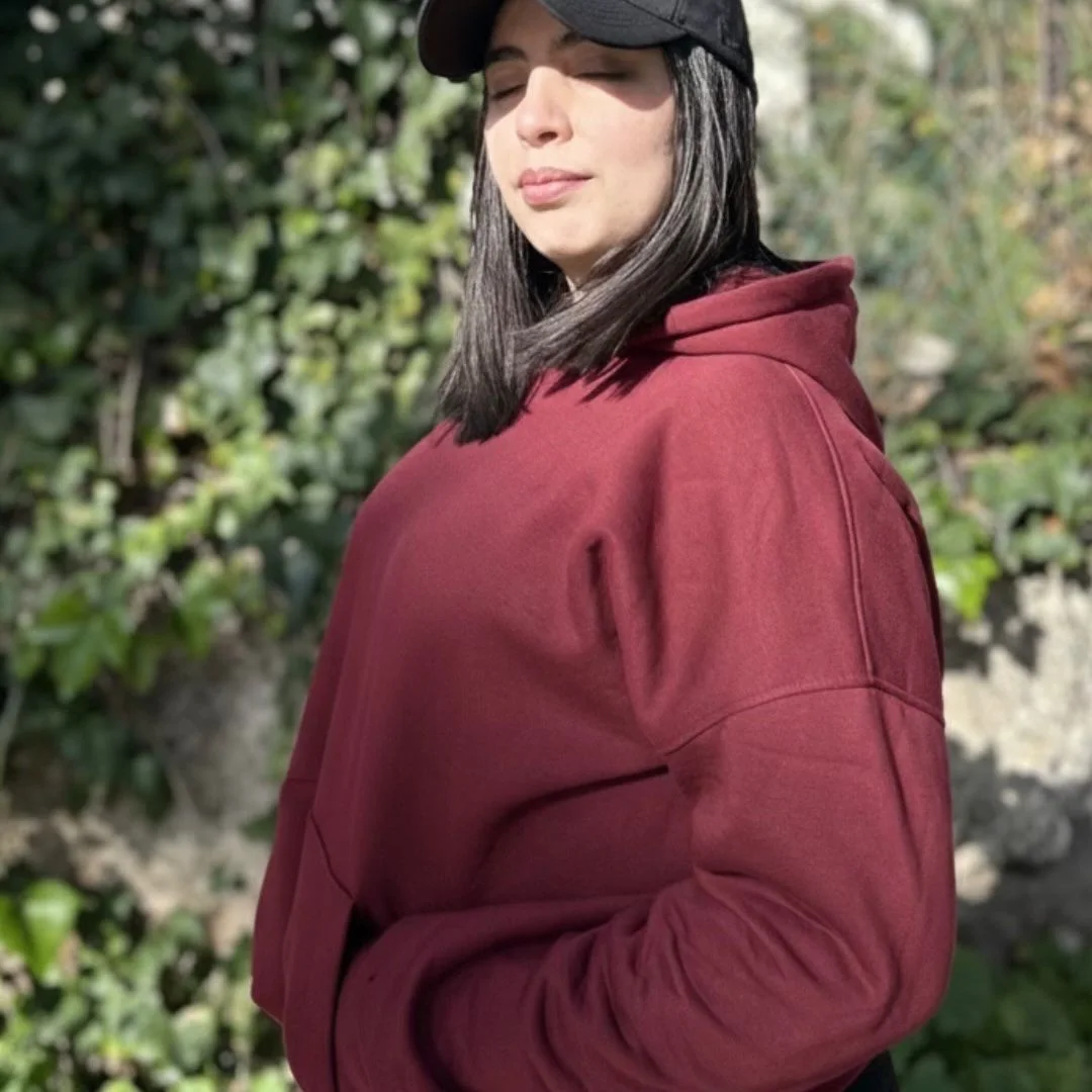 Hoodie oversize confortable avec poches, taille unique, parfait pour un style décontracté et tendance.